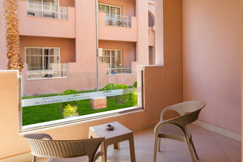 Die Anlage, die aus einem Haupthaus und mehrere Nebengebäuden besteht, hat insgesamt 296 Zimmer. Zu den Ausstattungsmerkmalen gehört eine Empfangshalle mit Rezeption und Lobby Bar, WLAN (inklusive), ein Hauptrestaurant sowie 3 Themenbuffetrestaurants (italienische und asiatische Küche sowie Snack-Restaurant) und ein Strand-Restaurant, verschiedene Bars, Friseur und eine kleine Shopping-Arkade vor dem Hotel. Das Hotel bietet einen kostenlosen Shuttle-Service zum Strand im Schwesterhotel. Zudem haben Gäste Zutritt zu den Hotels Pickalbatros Aqua Vista, Pickalbatros Aqua Blu und Pickalbatros Aqua Park der Gruppe und damit Zugang zu insgesamt 13 Pools. Im Hotel befinden sich verschiedene Swimmingpools (zwei davon nur für Erwachsene, 1 beheizbar), insgesamt 9 Wasserrutschen, 3 Pools für Erwachsene mit Rutschen und 3 Kinder-Rutschen-Pools mit insgesamt 16 Rutschen im Pickalbatros Aqua Blu sowie die Sonnenterrasse mit Liegen, Auflagen, Handtüchern und Sonnenschirmen. Diese sind am Pool und Strand inklusive, Badetücher sind gegen Kaution. Zudem gibt es eine Pool Bar und ein Amphitheater.