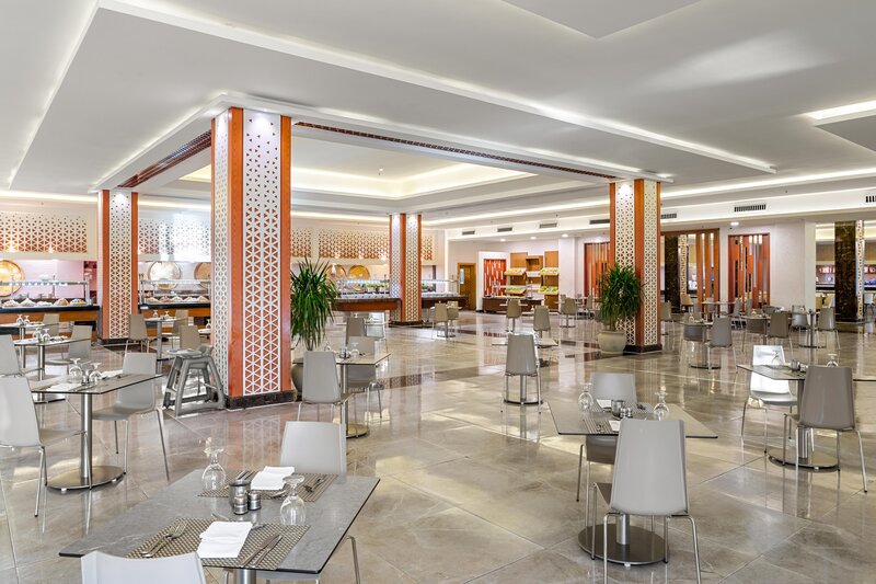 Frühstück, Mittagessen und Abendessen vom Buffet, Langschläferfrühstück, Late Dinner von 22.00 – 00:00 Uhr, Snacks im "Food Court" von 12 Uhr bis 17 Uhr im Pickalbatros Aqua Blu, Team-Time in der Lobby-Bar von 10-17 Uhr, Eiscreme in der Olympic Bar von 18 Uhr bis 23 Uhr. Am Strand vom BEACH ALBATROS gibt es eine Snackbar, die mit genutzt werden kann.