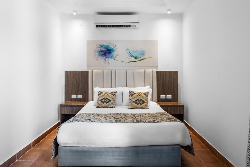 Die Zimmer verfügen über Dusche, WC, Föhn, Telefon, LCD Flatscreen Sat. TV, Minibar, tägliches Wasser, Toilettenartikel, Kaffee/Tee-Zubereitungsmöglichkeit, Safe, Klimaanlage und Balkon/Terrasse. Es gibt ein begrenztes Kontingent an Sparzimmern (DZP/TZP). Zudem sind Doppelzimmer mit Gartenblick (DZG/EZG/TZG), Poolblick (DPZ/EPZ/TPZ) oder Meerblick (DZM/EZM/TZM) buchbar.