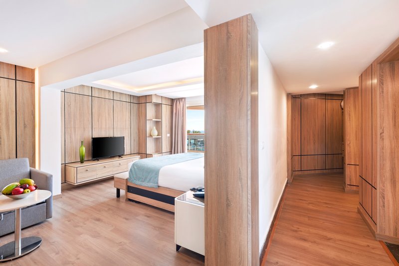 Die komfortablen Zimmer verfügen über Dusche, WC, Föhn, Klimaanlage, Minibar, tägliches Wasser, Kaffee/Tee-Zubereitungsmöglichkeit, WLAN, Telefon, Safe, Sat. TV, Balkon oder Terrasse.Buchbar sind Bungalow Zimmer mit Gartenblick (BDG/EBG/B3G) oder Bungalow Zimmer mit Poolblick (BUP/EUP/B3P) (ca. 28 qm) sowie Doppelzimmer mit Meerblick, ca. 24 qm groß, (DZM/EZM/TZM). Die Sparzimmer (DZP/TZP) sind gleich ausgestattet, aber ohne Pool-, Garten- oder Meerblick.Die Familienzimmer mit Gartenblick (FZG/FG3) sind mit 48qm deutlich geräumiger. Die Familienzimmer mit Poolblick (F2P/F3P) sind zudem mit einer Schiebetür zu einem weiteren Schlafzimmer ausgestattet.