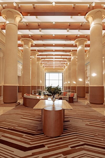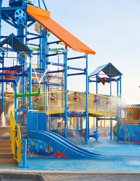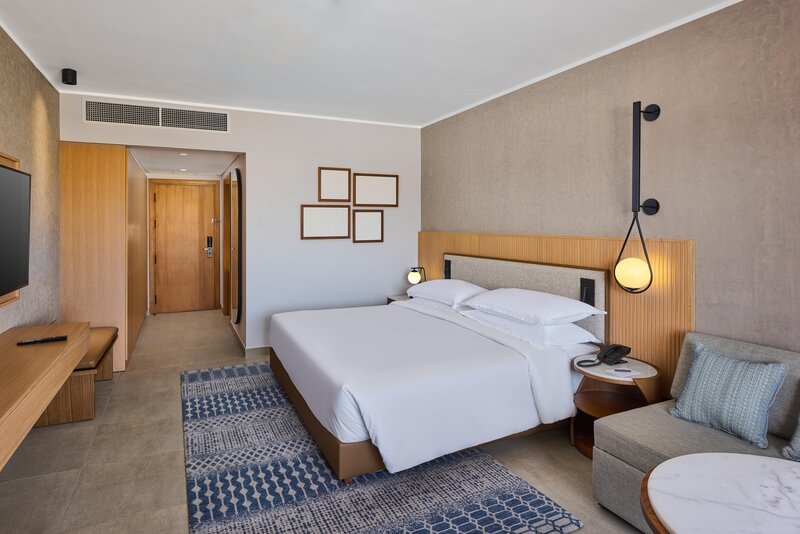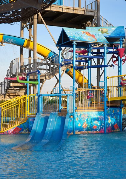 Das architektonisch eindrucksvoll gestaltete Hotel besteht aus 2 3-stöckigen Gebäuden mit insgesamt 326 Zimmern. Es gibt eine Empfangshalle mit Rezeption und Lobbybereich, Internetecke (gegen Gebühr), WLAN kostenlos, Hauptrestaurant mit Nichtraucherzone, Strandrestaurant, italienisches À-la-carte-Restaurant (Vorabreservierung), Bars, Diskothek, Friseur und Geschäfte.
