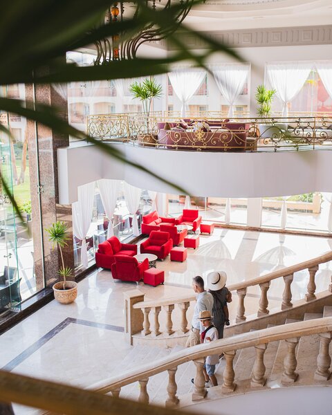 Bei Pauschalreisen mit Transfer empfängt Sie ein Mitarbeiter der örtlichen Reiseagentur am Flughafen. Er hat in der Regel ein Schild mit dem ETI-Logo in der Hand. Der Mitarbeiter begleitet Sie zu Ihrem Shuttle, der Sie zu Ihrem Hotel bringt. Für den Rückflug werden Sie direkt von Ihrem Hotel abgeholt. Die genaue Abholzeit und weitere Informationen erhalten Sie etwa einen Tag vor Ihrer Abreise in Ihrem Hotel. Diese Informationen werden in der Regel durch Aushänge bekannt gegeben. Die Transferzeit zum Hotel Titanic Palace beträgt ca. 25 Minuten.