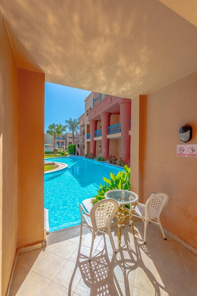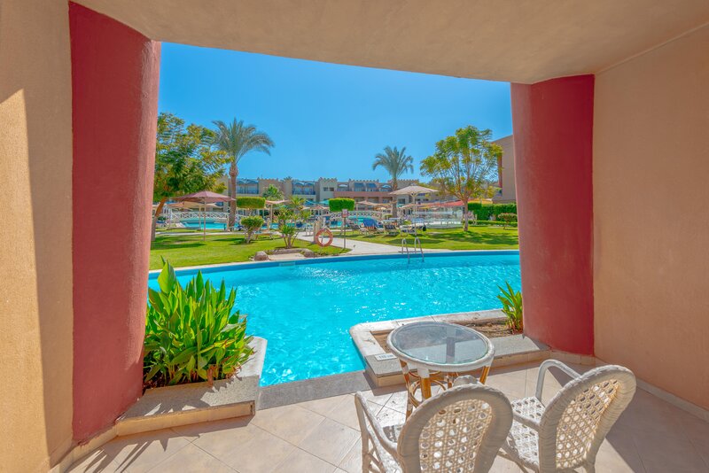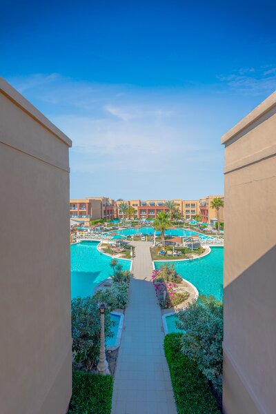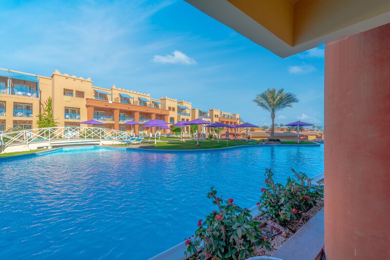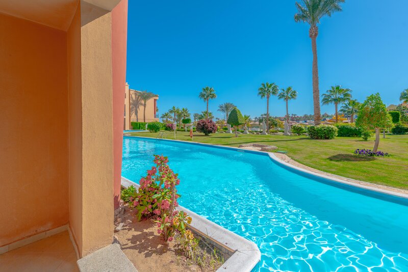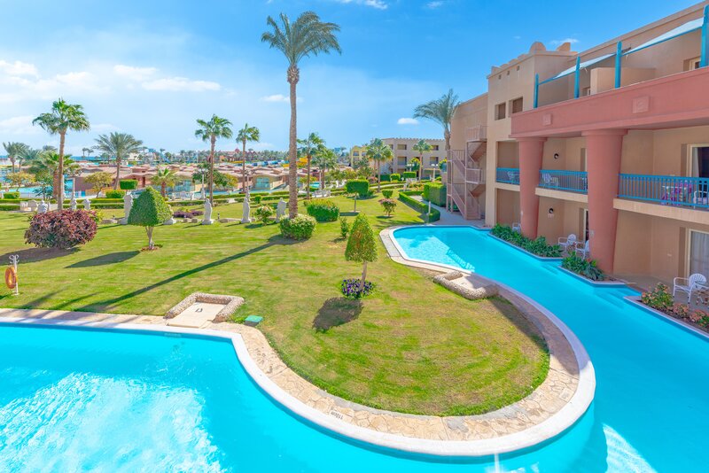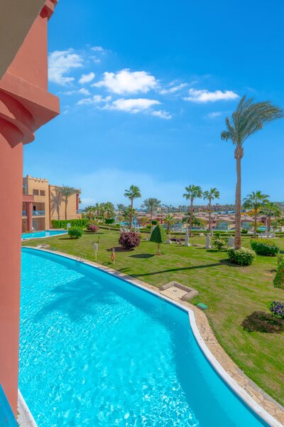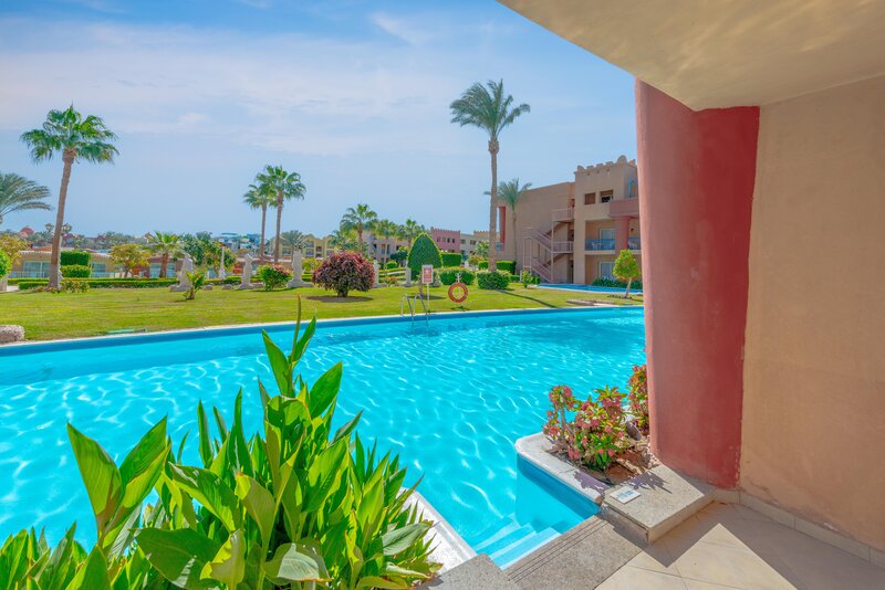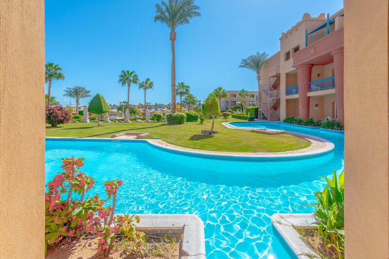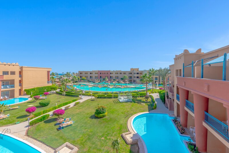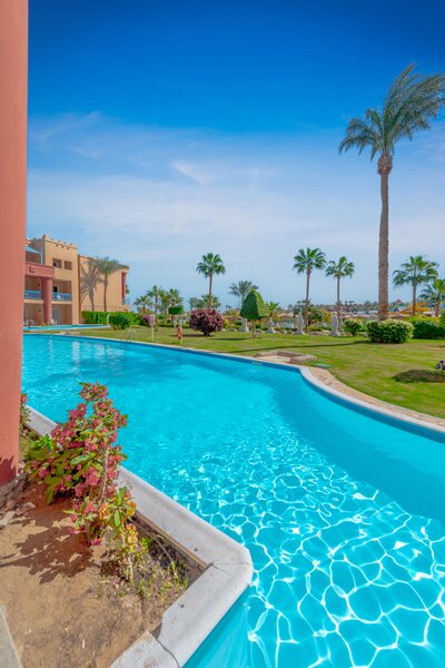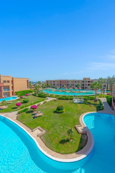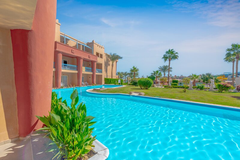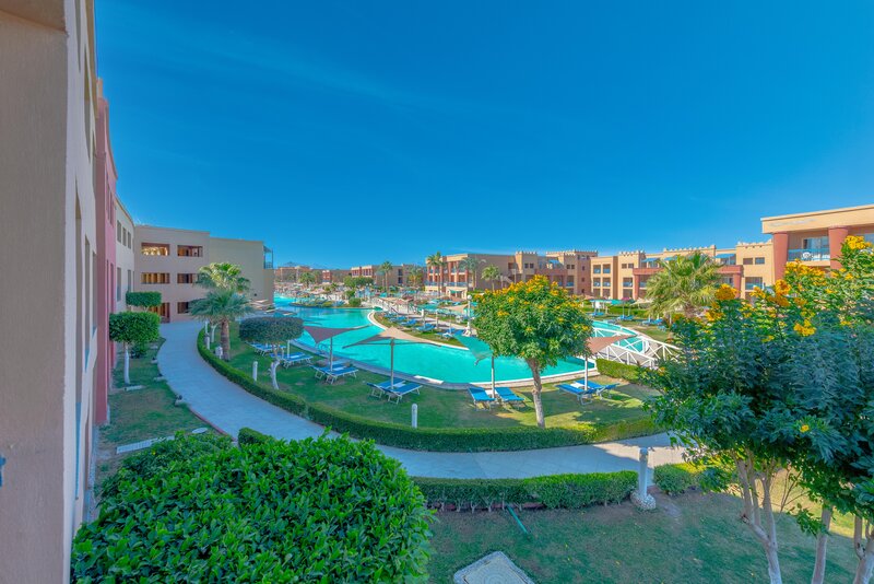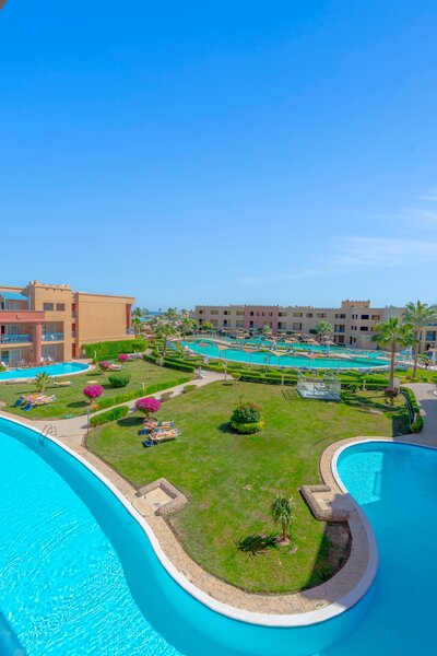 Das Zentrum von Hurghada mit zahlreichen Einkaufs- und Unterhaltungsmöglichkeiten ist ca. 18km entfernt. Die Entfernung zum Flughafen beträgt etwa 10km.