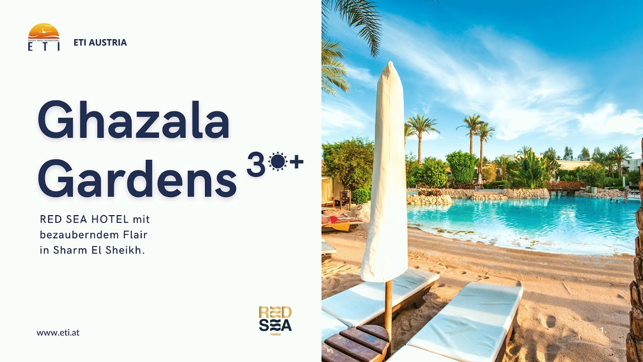 Der im nubischen Stil erbaute Hotelkomplex liegt direkt an der schönen Na'ama Bay, dem Zentrum Sharm El Sheikhs. Es ist durch das Schwesternhotel „Ghazala Beach" und durch eine Straße vom feinen Privatstrand getrennt. Das „Ghazala Gardens" ist idealer Ausgangspunkt für Partygänger in die angesagtesten Topclubs und ist nach kurzer Transferzeit (15 Minuten) vom Flughafen Sharm El Sheikh zu erreichen.