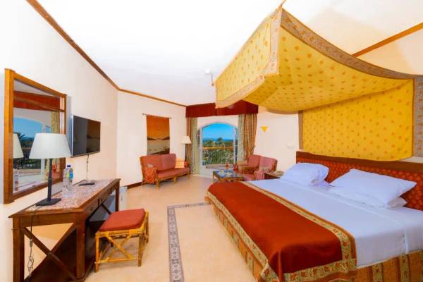 Das Siva Grand Beach Hotel liegt direkt am flach abfallenden Sandstrand, der oft als schönster Strand in Hurghada bezeichnet wird. Der zentrale Swimmingpool mit Sonnenterasse liegt in einer weitläufigen Gartenanlage. Perfekt für einen Spaziergang durch den gepflegten Palmenbestand.