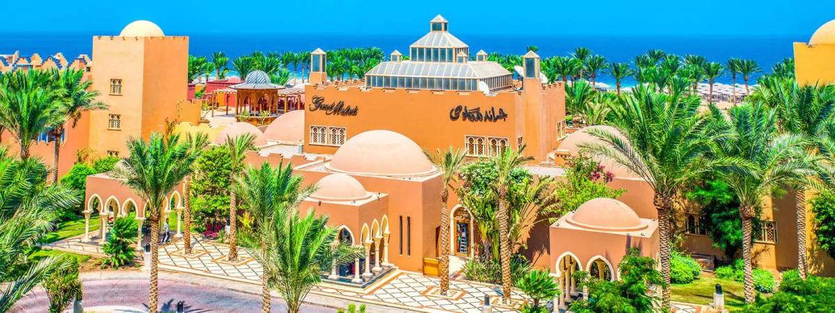 Das Hotel The Grand Makadi liegt in der schönen Makadi Bay am Roten Meer in Ägypten. Die Hotelanlage besteht aus mehreren kleineren Gebäuden, die im maurischen Stil erbaut sind und eine farbenfrohe Atmosphäre schaffen.