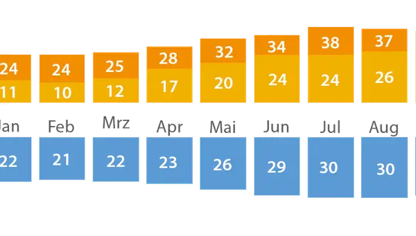 Sahl Hasheesh ist dank seines subtropischen Klimas ein Ganzjahresziel. In den Sommermonaten kann das Thermometer auf über 35 Grad Celsius steigen, während das Rote Meer mit angenehmen 28 Grad für eine erfrischende Abkühlung sorgt. Besonders die Monate März bis Juni sowie September bis November bieten perfekte Bedingungen für einen ausgiebigen Badeurlaub, bei dem Sonnenanbeter voll auf ihre Kosten kommen. Aber auch im Spätherbst und Winter ist Sahl Hasheesh mit milden Temperaturen zwischen 20 und 25 Grad ein idealer Rückzugsort für alle, die der Kälte zuhause entfliehen möchten.